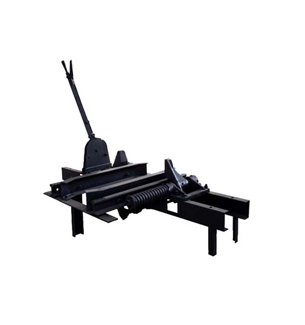 此阻車器為阻輪式阻車器,是礦井車場中將運行的礦車停止在某一個固定點的限位裝置,主要由一對阻爪和彈簧緩沖裝置等組成。阻爪打開時,礦車可自由通過;阻爪關(guān)閉時即阻擋住礦車車輪,是礦車停停止前進。阻車器可分為單式和復(fù)式兩種。復(fù)式阻車器即兩個聯(lián)動的單式阻車器,相互動作閉鎖,除停止礦車外,還起分解礦車的作用。